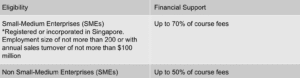 *Companies with existing SkillsFuture Enterprise Credit (SFEC) can receive up to 90% additional subsidy to offset the remaining fees.